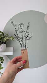 Votre bouquet a été fabriqué de manière artisanale. Il a été imaginé dans mon petit atelier breton, sera emballé avec amour. Le socle est fabriqué en bois de chêne, il pourra présenter des noeuds ou aspérités qui feront tout son charme.